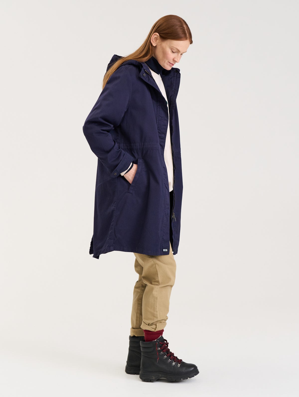 A women's version of our classic maxi anorak. The sleeve length is adjusted to fit women's sizing and there is more room on the hips. Zipper with wind panel an press buttons. Adjustable drawcord on the waist, zip pockets on the sides. Drawstrings in the hood. An embroidered logo on the left side sleeve. The hem is slightly longer on the back and there is a slit on the middle.