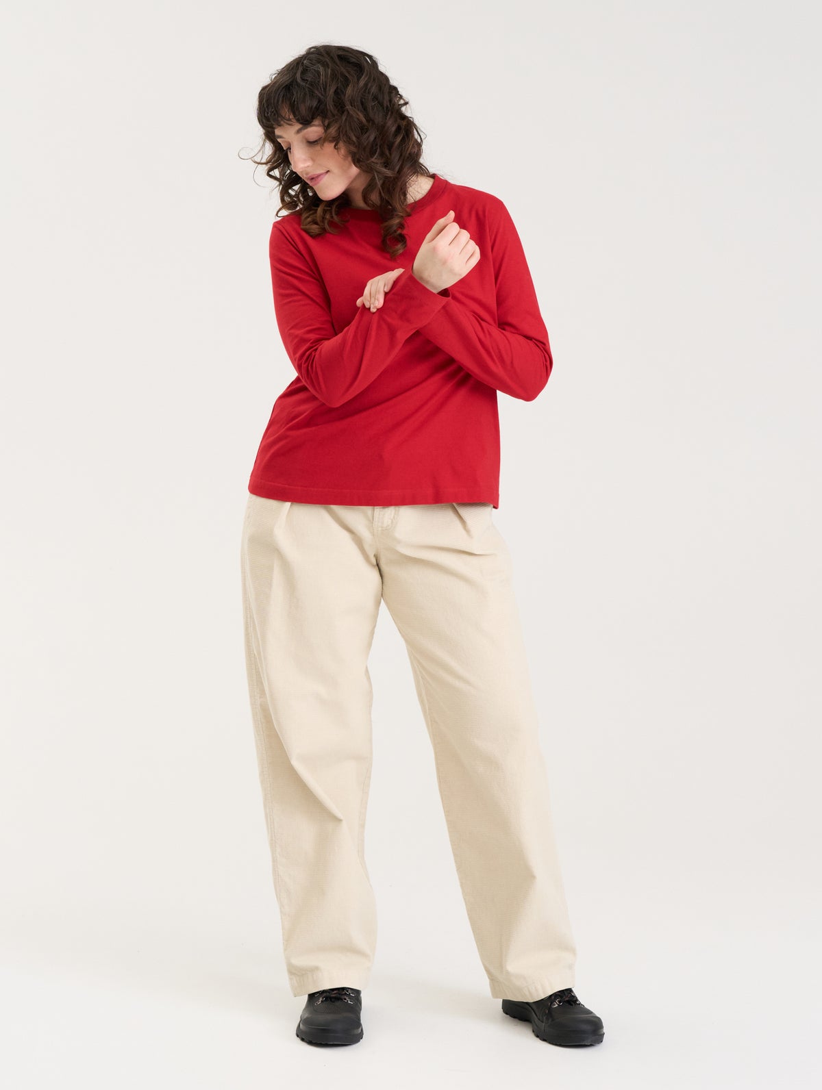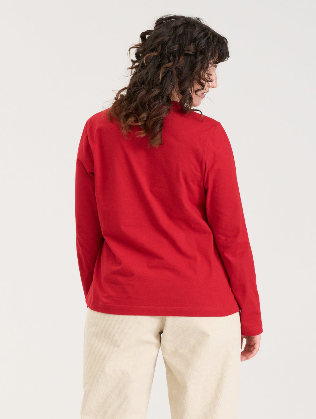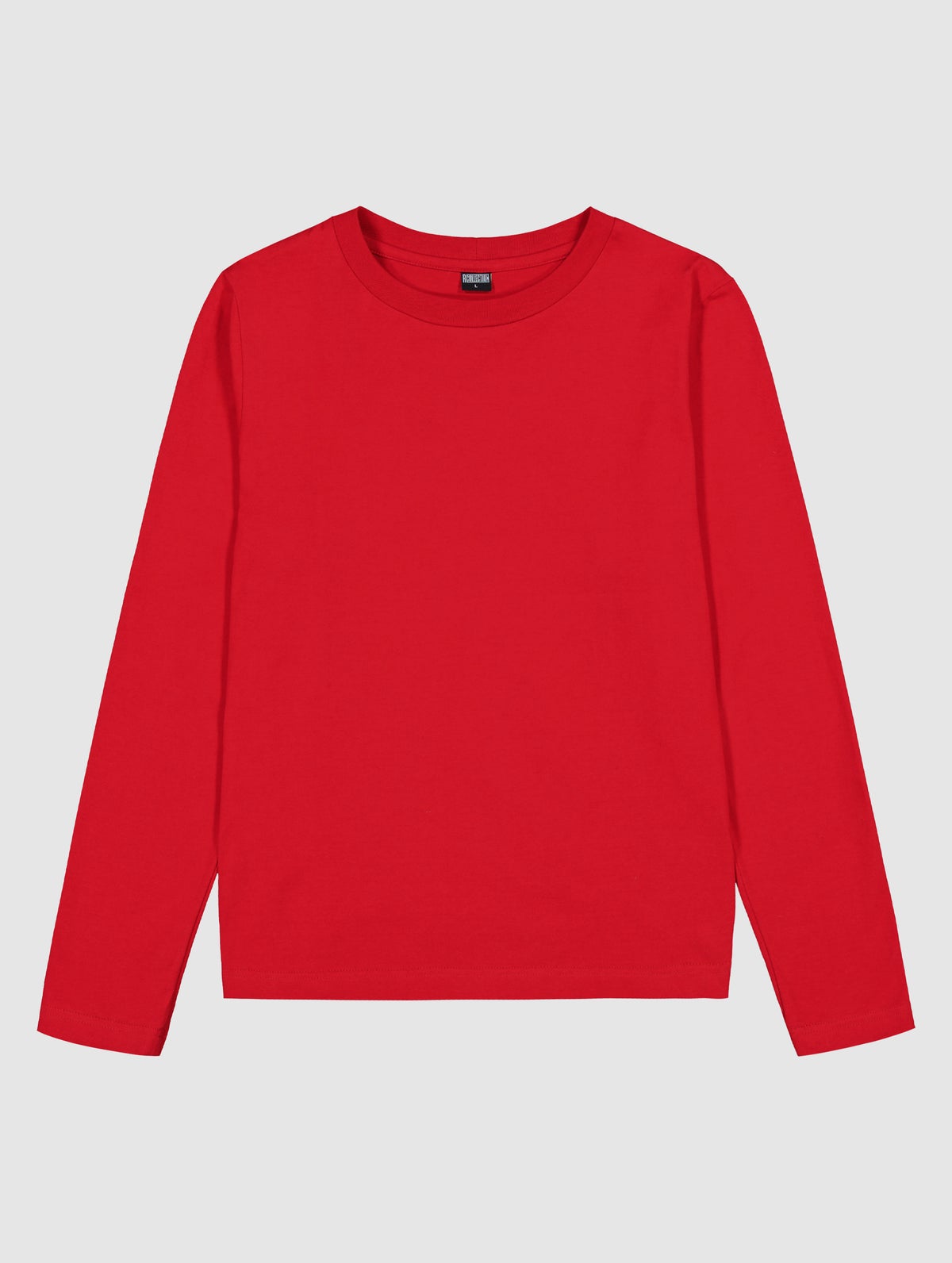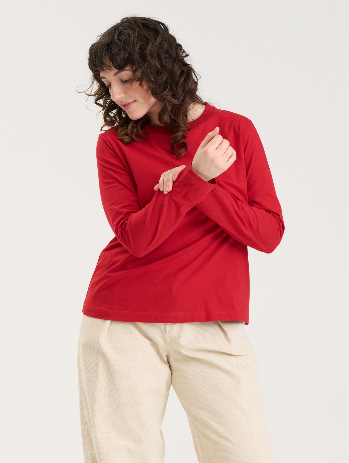 Women's long-sleeved T-shirt. Round neckline and long sleeves. Narrow fit.