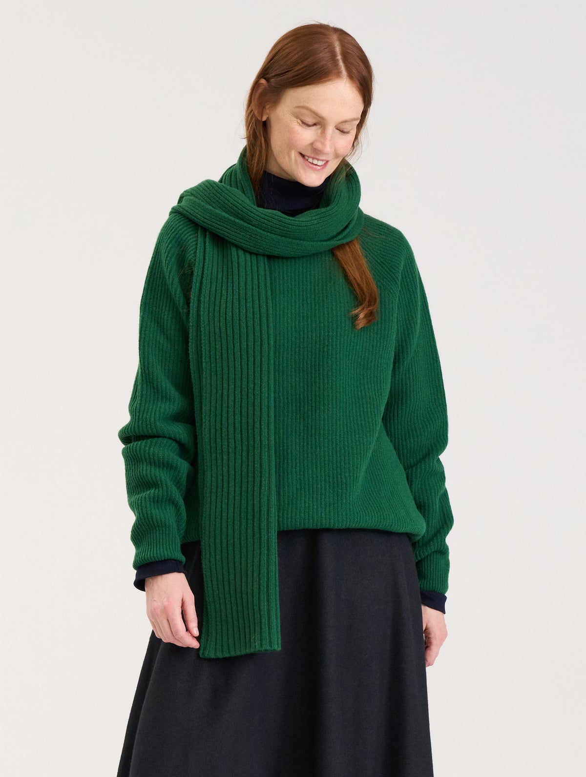 Unisex rib knit sweater, made from Italian wool blend. Raglan shoulders and long sleeves. Straight fit and round neckline with a rib.