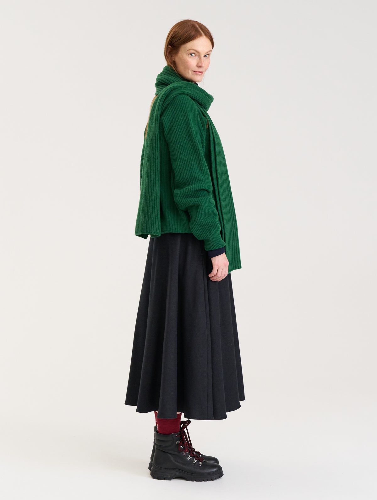 The sweater is designed in Finland and made in Lithuania from Italian wool blend.