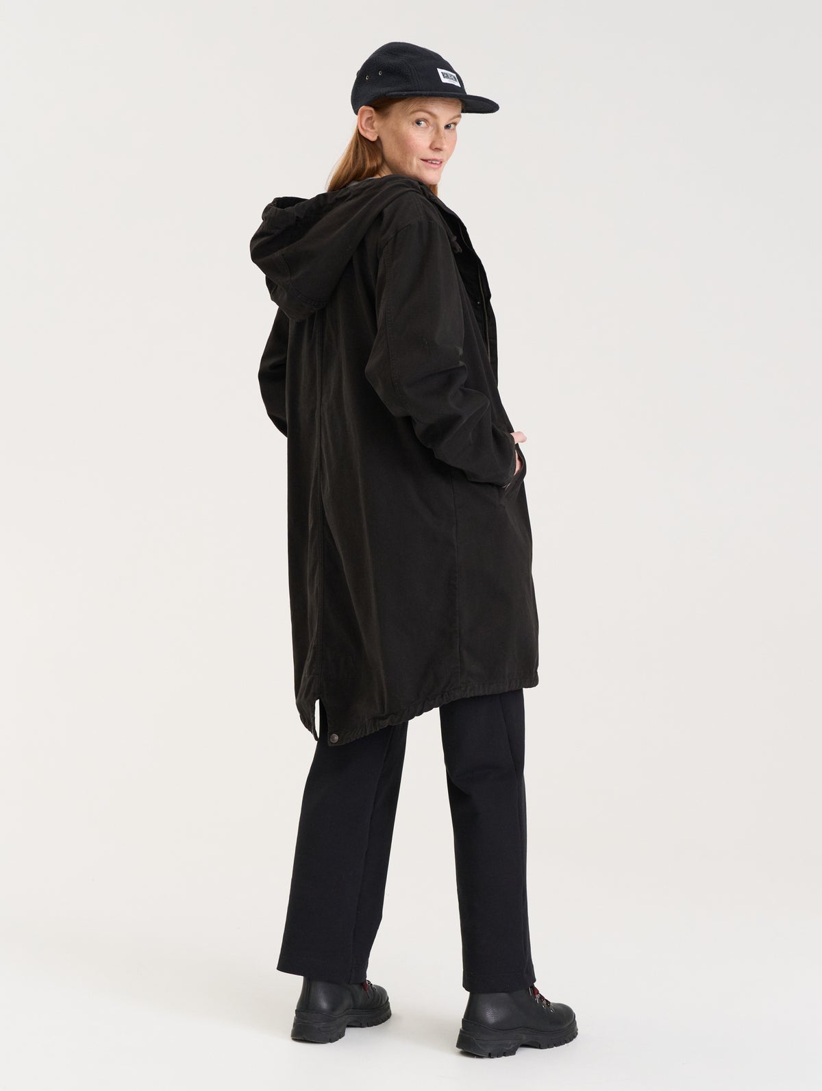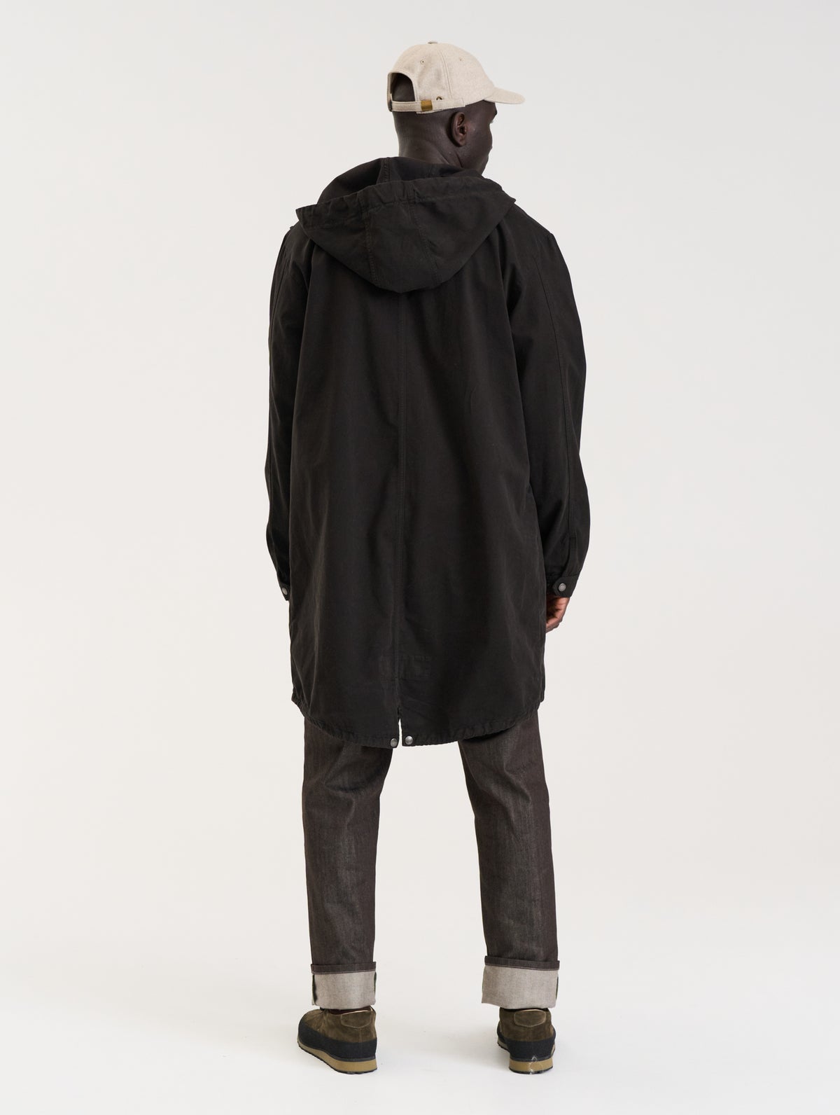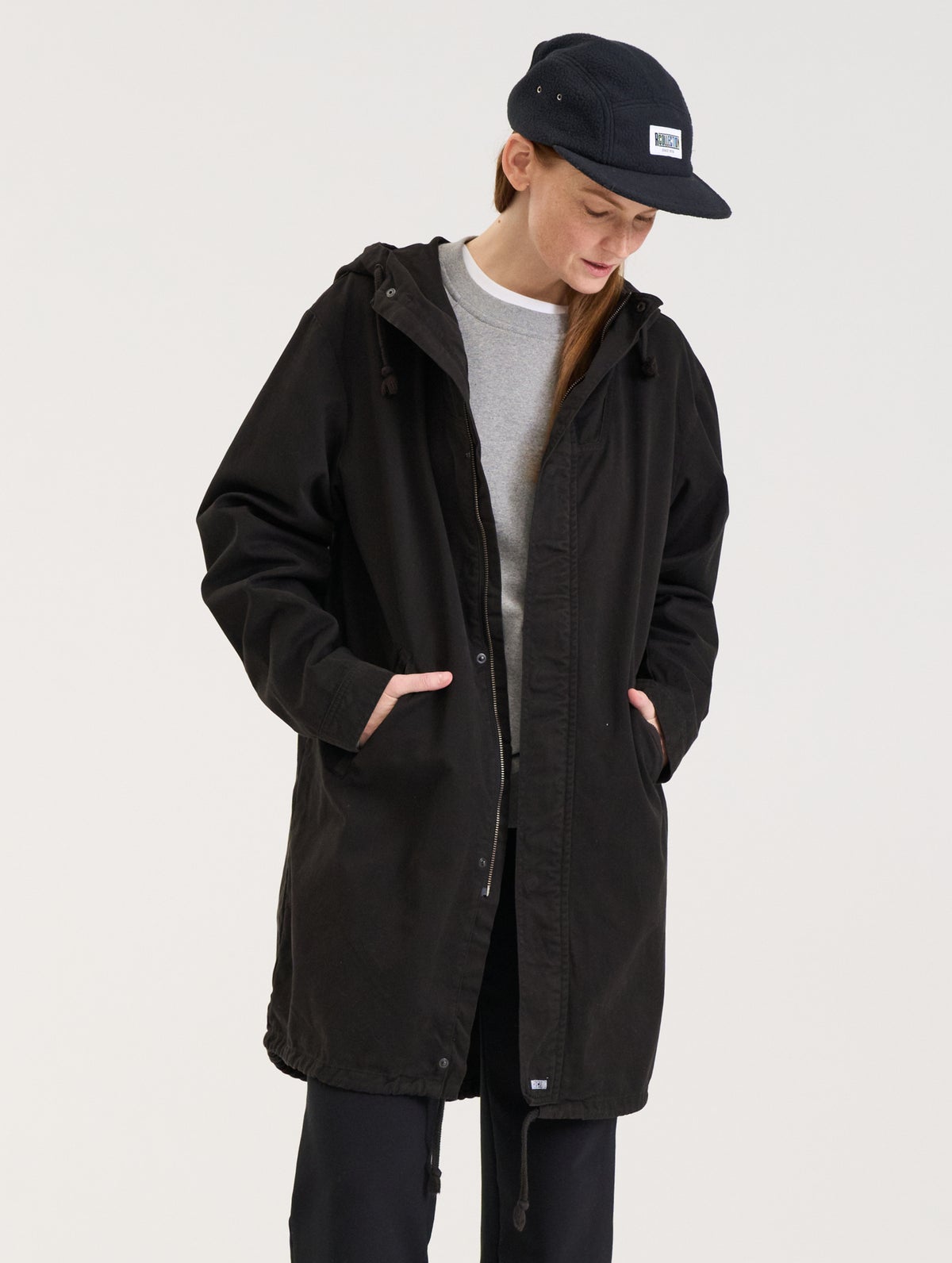 A long version of our classic zipper anorak. Made from durable and strong GOTS certified 100% organic cotton fabric. Loose fit, suitable for both men and women. Perfect for outside activities all year round. Zip pockets on the sides. Drawstrings in the hem and hood. An embroidered logo on the left side sleeve.