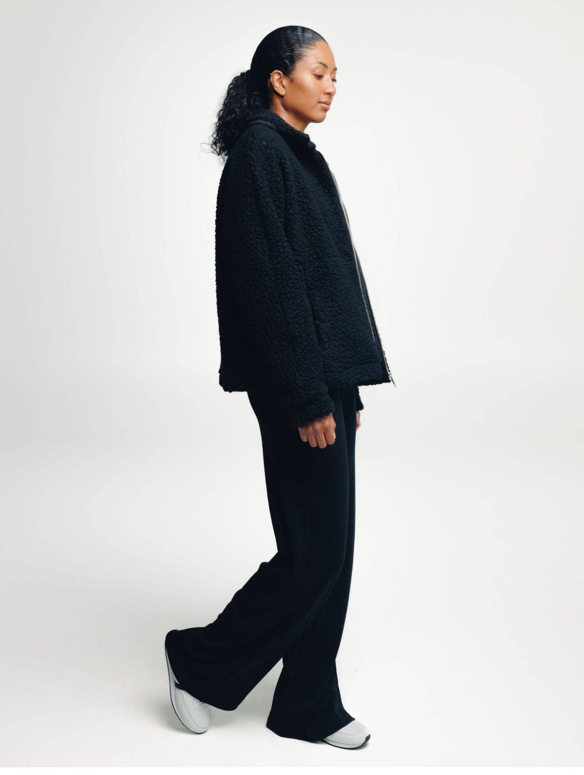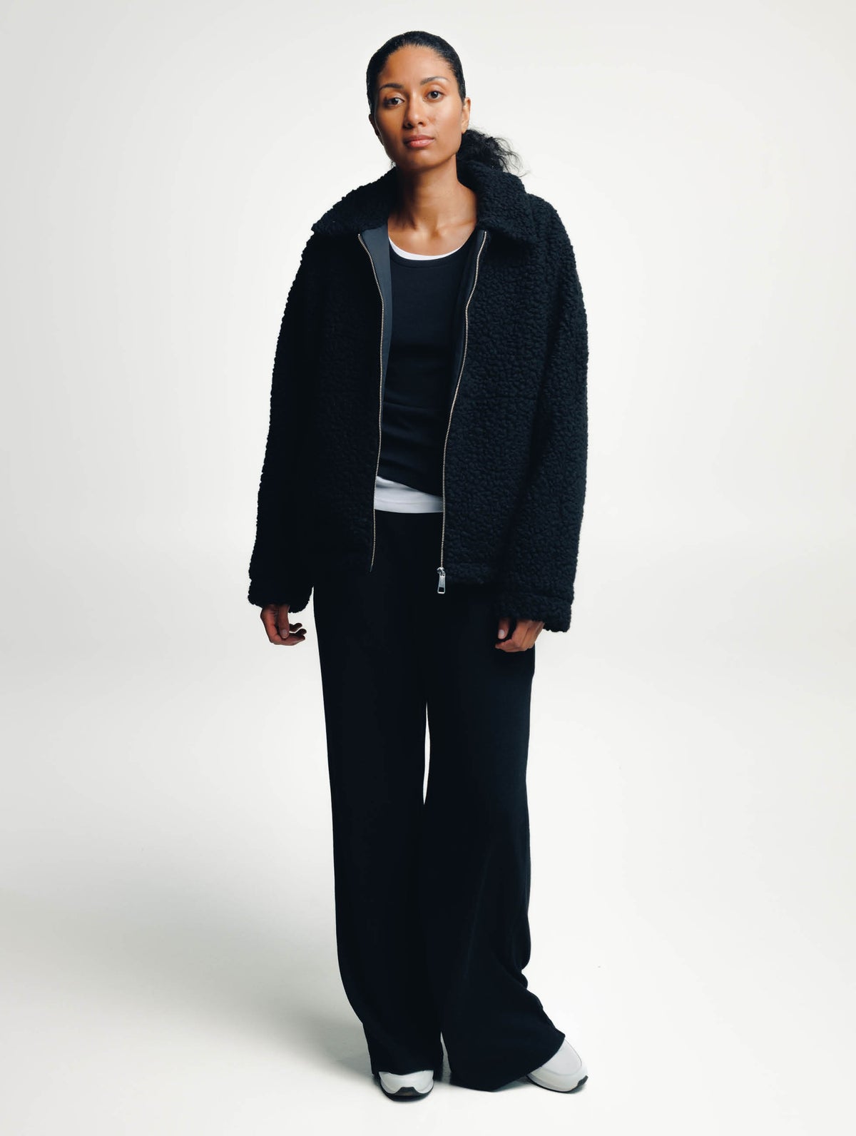 Women's light teddy jacket for between seasons. Simple, relaxed fit. Straight sleeves without shoulder seam. Zipper and pockets on the front.