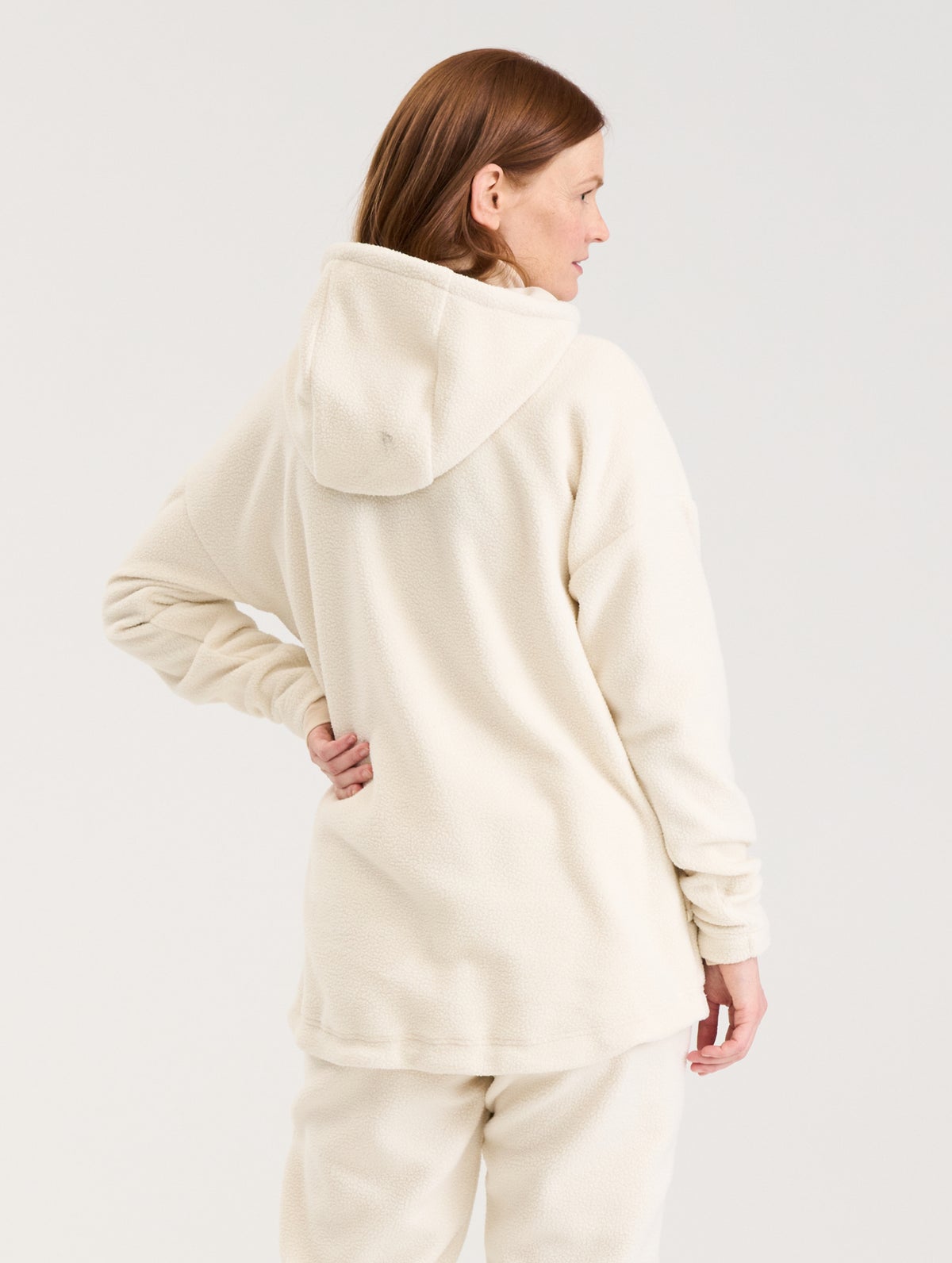 The high quality Polartec® fleece fabric is made of recycled polyester. It is light and breathable, but also keeps you warm. We recommend washing the garment in a separate laundry bag to prevent the flow of microfibers ending up in your drain.