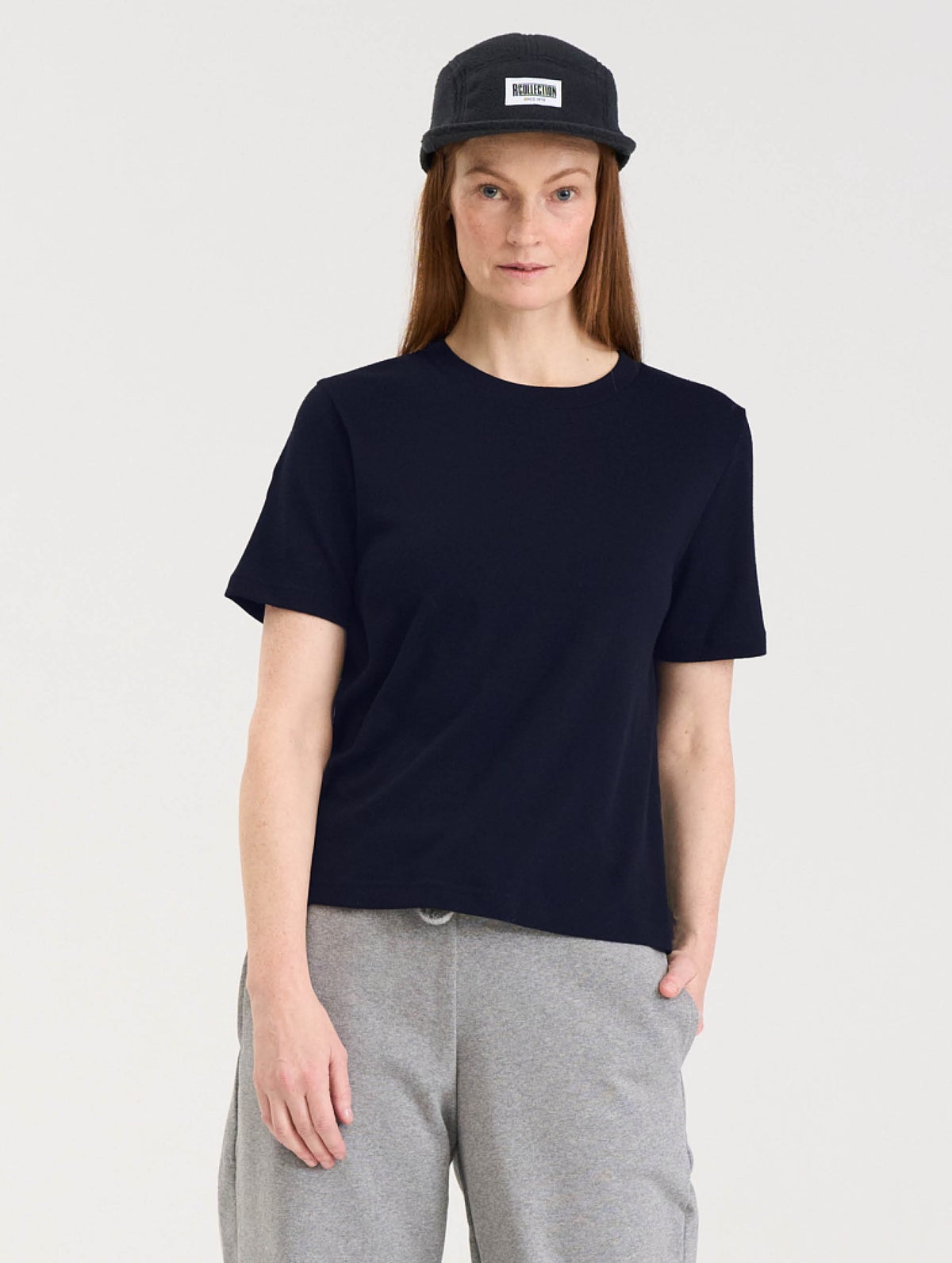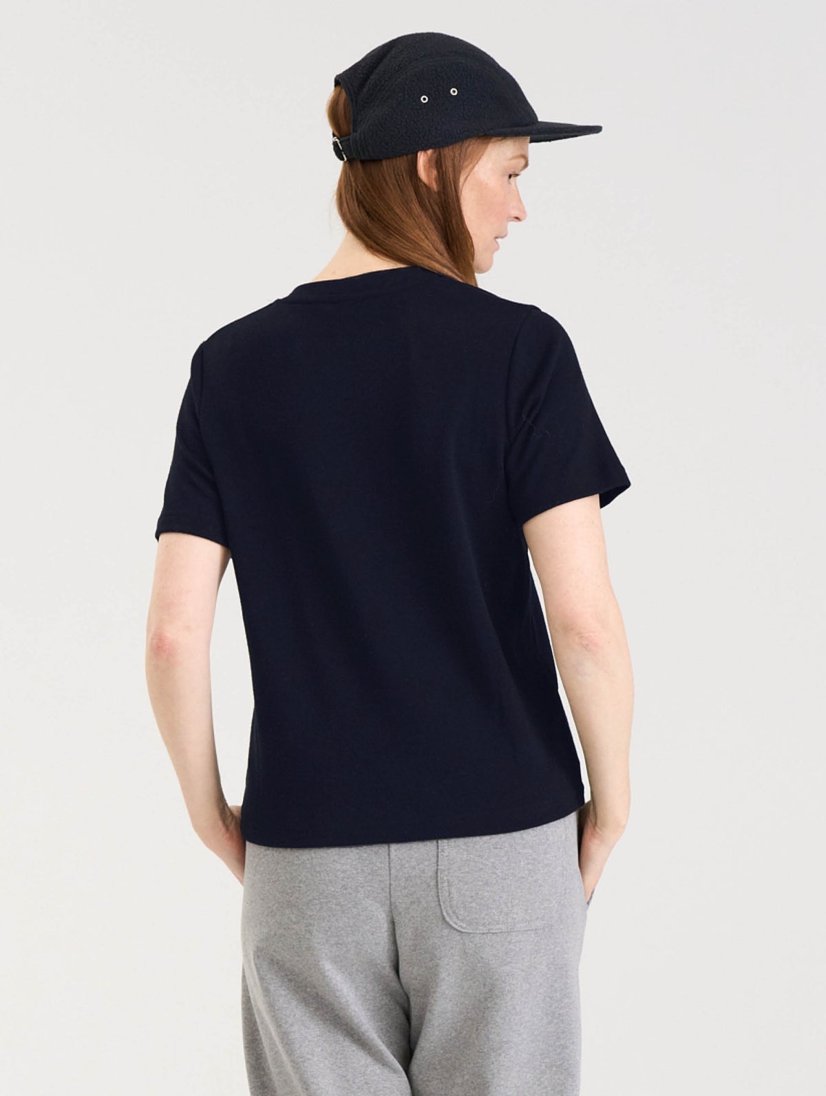 Women's loose t-shirt in soft merino wool fabric. Round neckline.