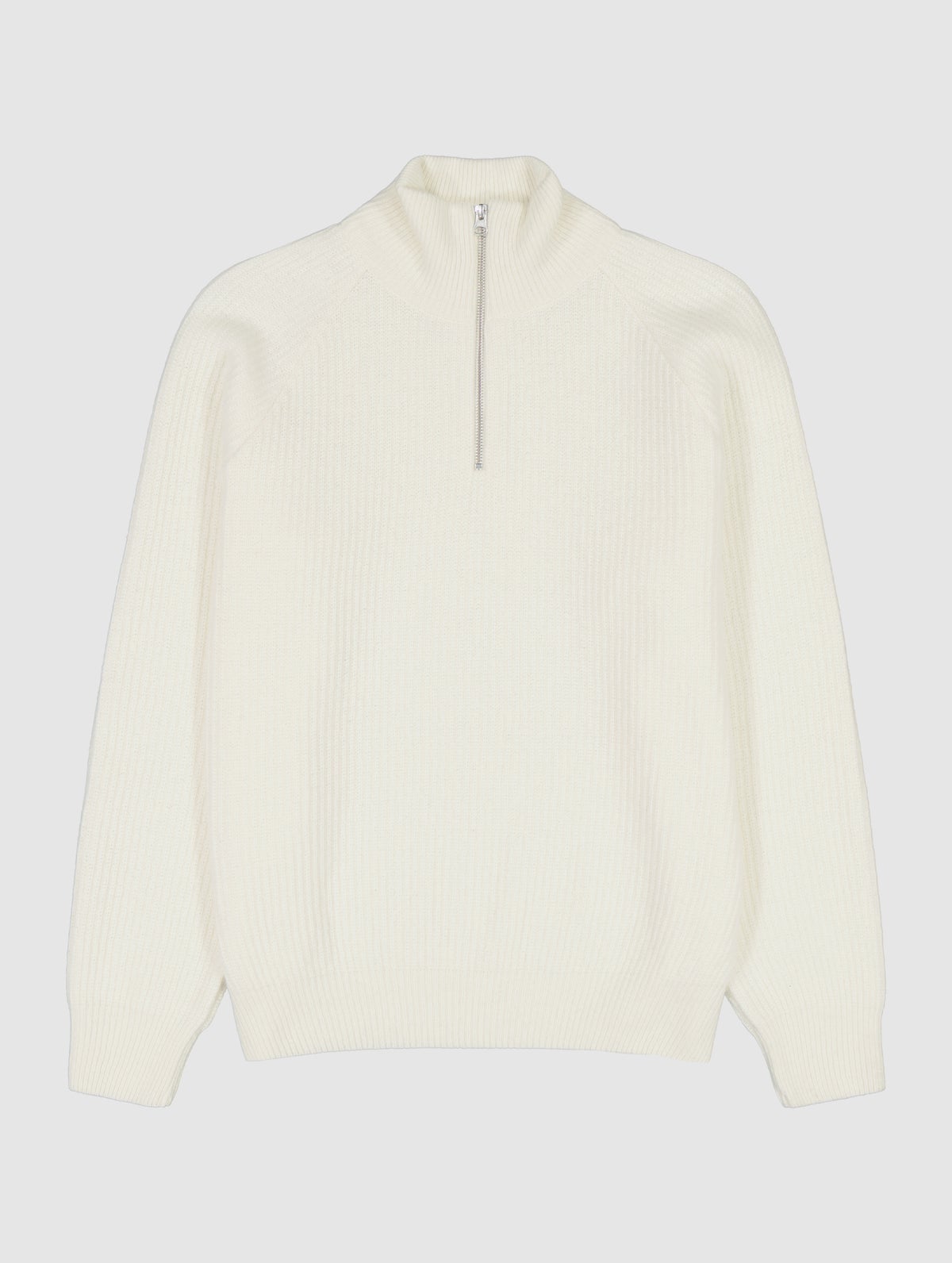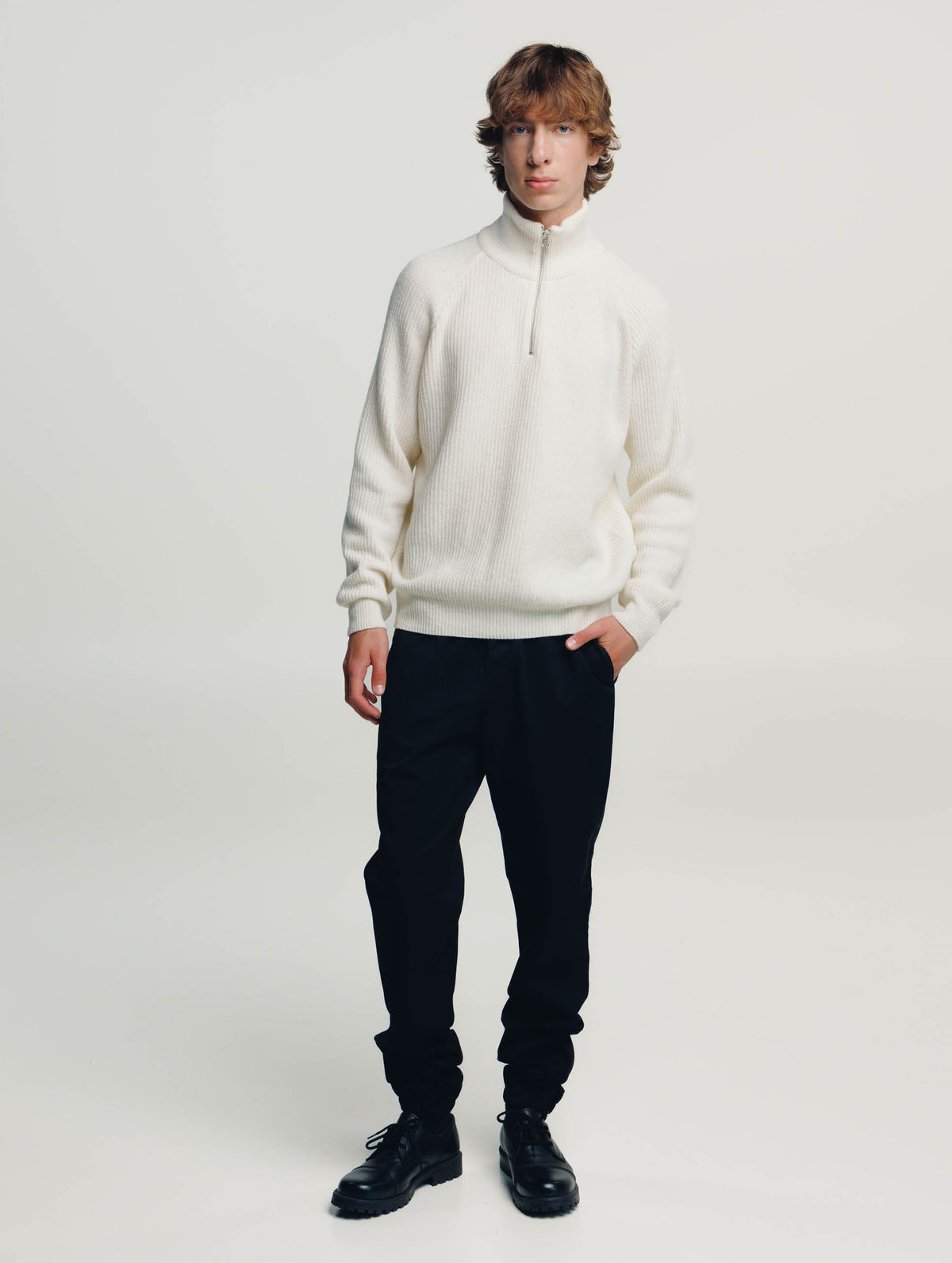 Relaxed unisex sweater. Turtleneck with short zipper on the front.