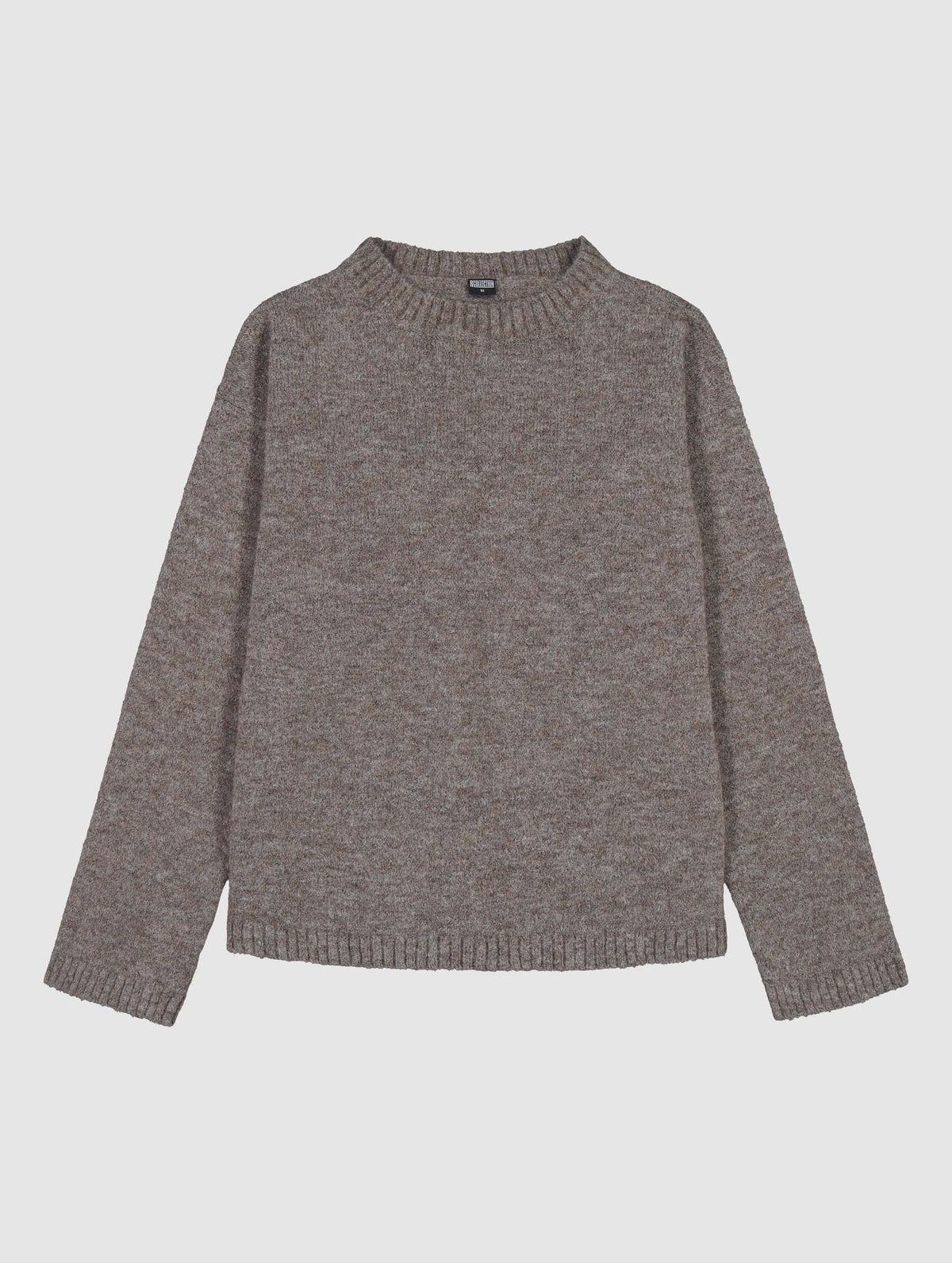 Women's loose-fit knit sweater made of soft alpaca wool blend. Dropped shoulders. Ribbings on neck opening and cuffs.