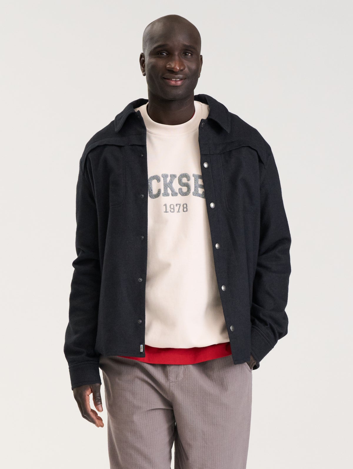 Men's relaxed flannel shirt with snap button fastening at the front. Snap button adjustments and slits on the cuffs. There are two pockets under the top list and a tone-on-tone embroidery at the front.