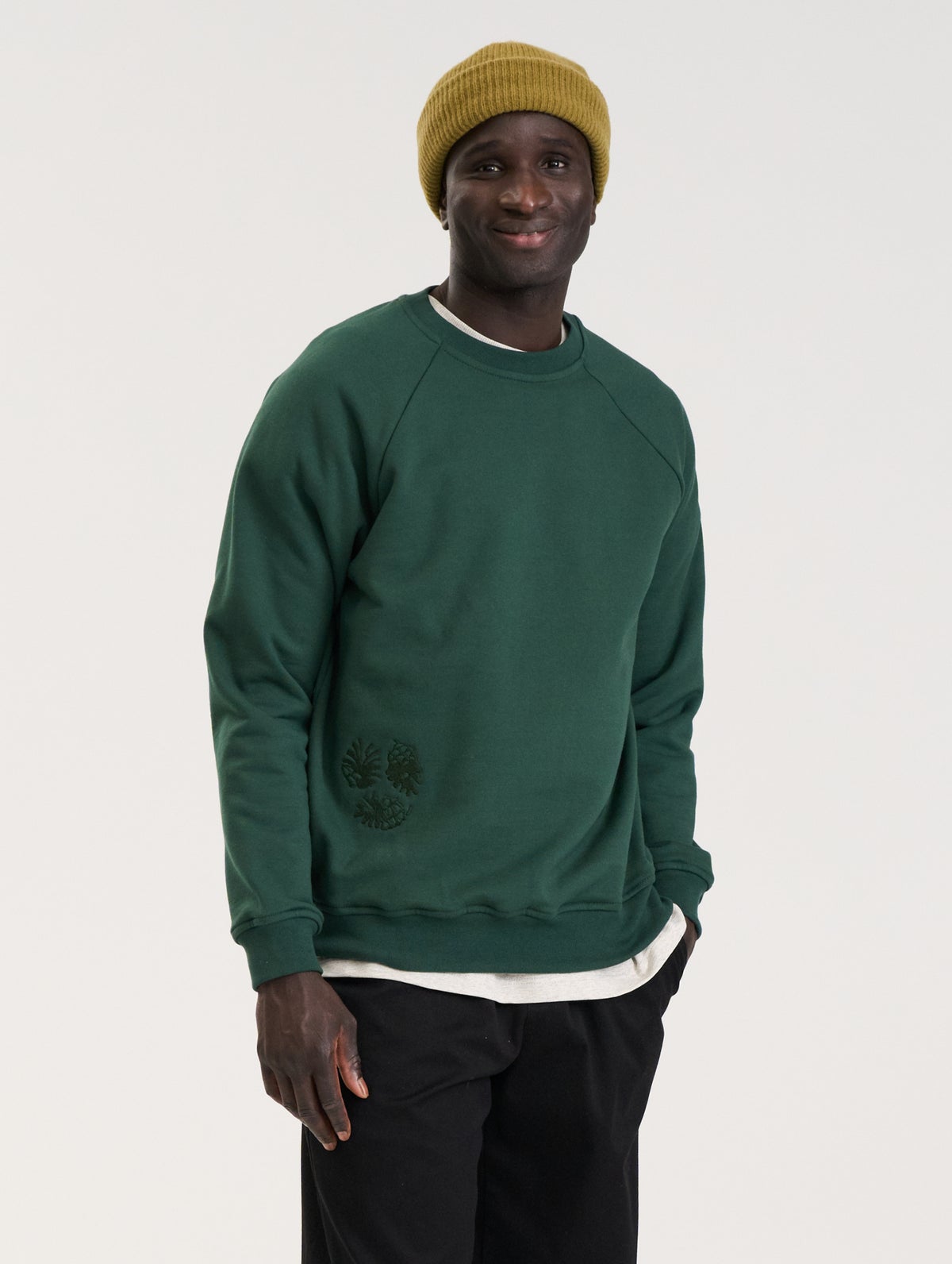 R-Collection's classic Sweatshirt with an embroidered Pine cone illustration by Teemu Järvi. Teemu Järvi is a Finnish artist specializing in wilderness themes.