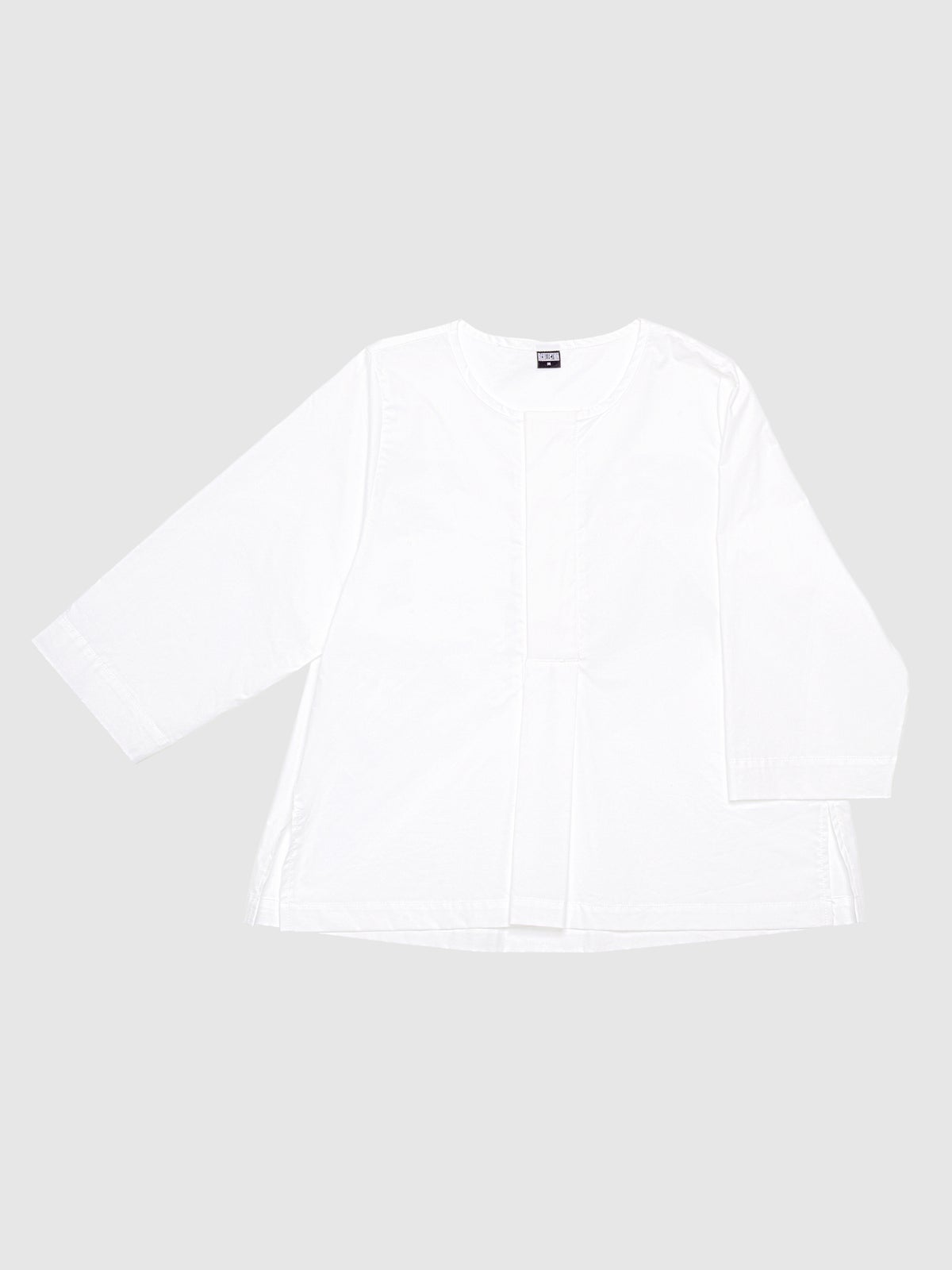 Relaxed women's shirt made of cotton poplin. 2/3-length sleeves. Front placket with hidden buttons. Slits in the side seams.