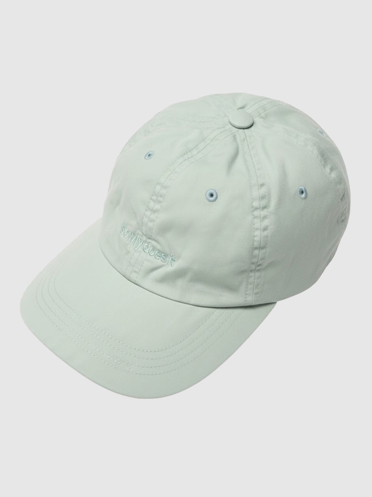 6-panel cap made with men's sizing. An embroided Slowly does it text on the front. Adjustable buckle fastening on the back.