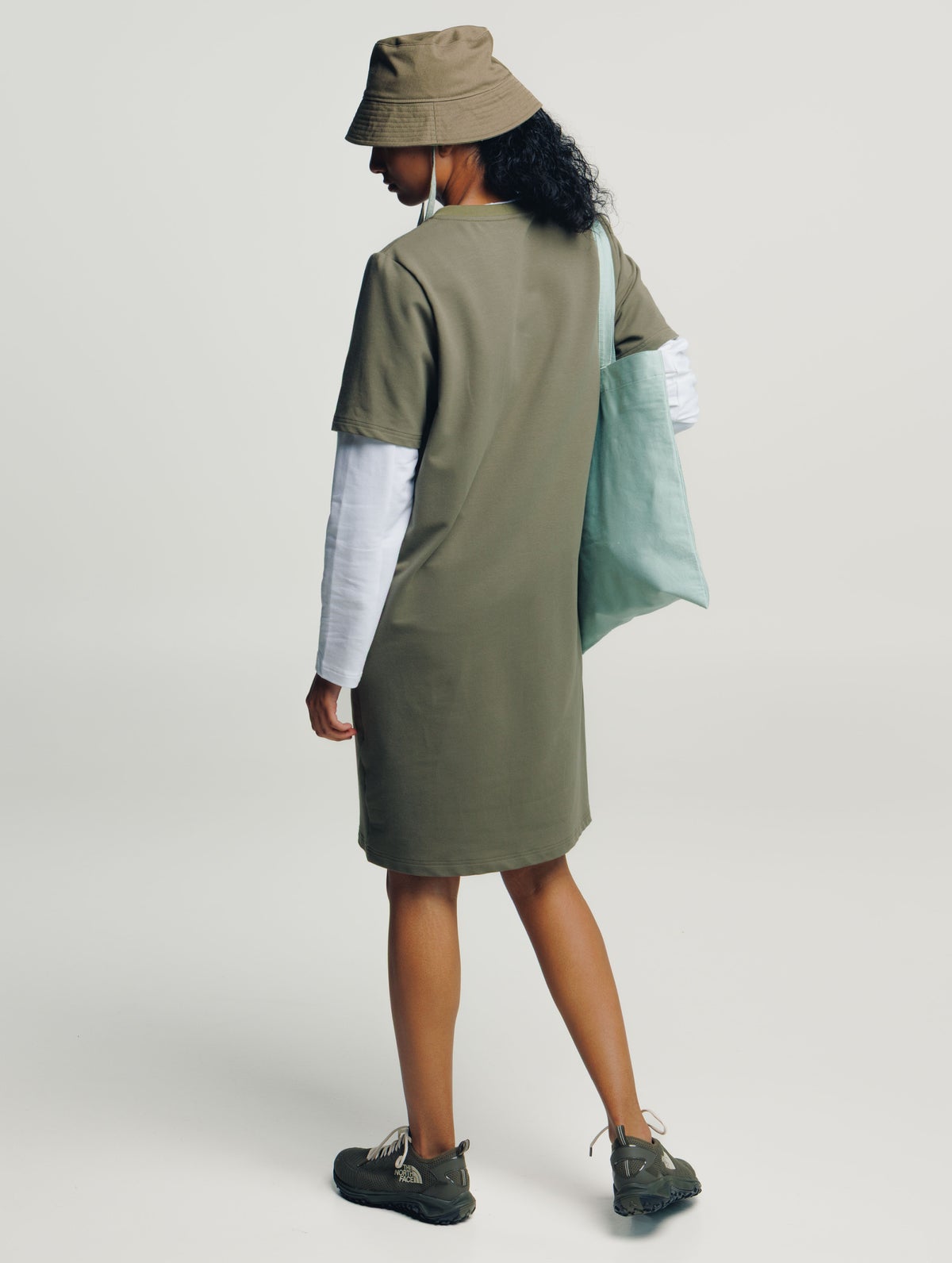 Women's T-shirt dress in stretchy GOTS certified organic cotton blend. Straight fit. Round neckline with ribbing.